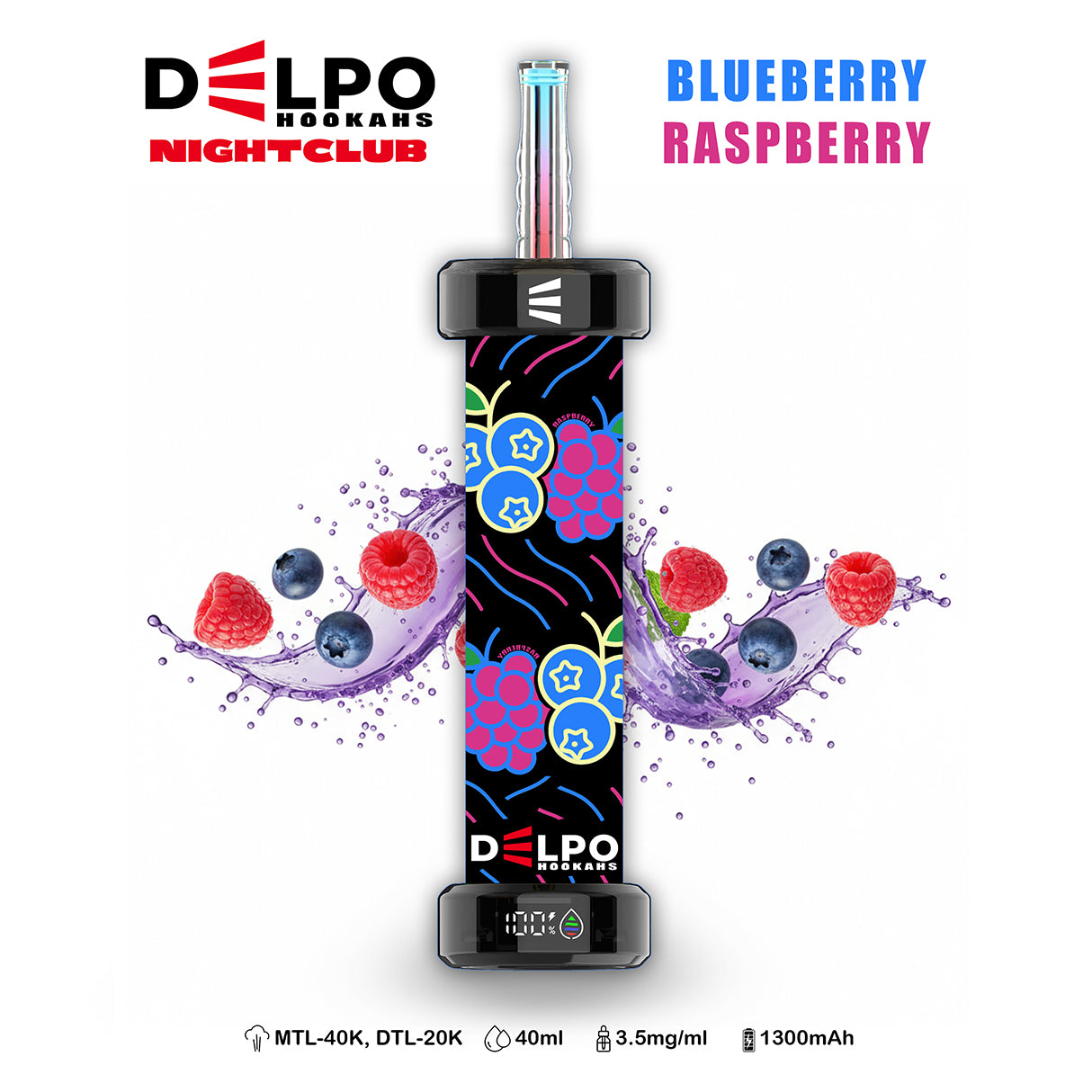 Delpo Hookahs 'Nightclub' 40,000 Puffs Blueberry Raspberry E-Hookah Features: